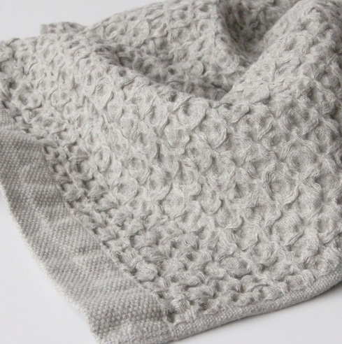 リネンのサラッとした風合いとコットンの柔らかさを併せ持ったワッフル織りのタオル。お洗濯を重ねるごとに味わいのあるソフトなワッフル感が増していきます。