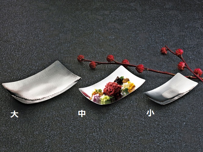 詳細 | ★内容:ステンレス槌目 吹上長角皿 中 ★サイズ:約21×12×H3.5cm |